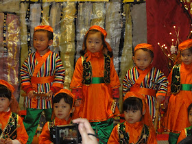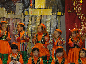 首先上場的是奧福音樂班的小朋友表演「古老的曲調」,小朋友的服裝好有少數民族風喔~~我好喜歡妞妞的這個服裝。是說~~~把瀏海紮起來的妞妞,頭 扣 得更明顯了,臉更大了。