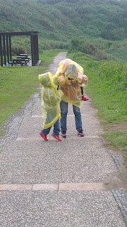這天陰雨的天氣,使得我們來到富貴角要有準備雨衣的打算,還記得那件跟我們去鵝鑾鼻的雨衣嗎?